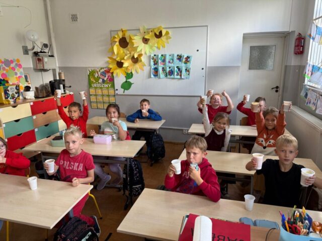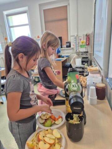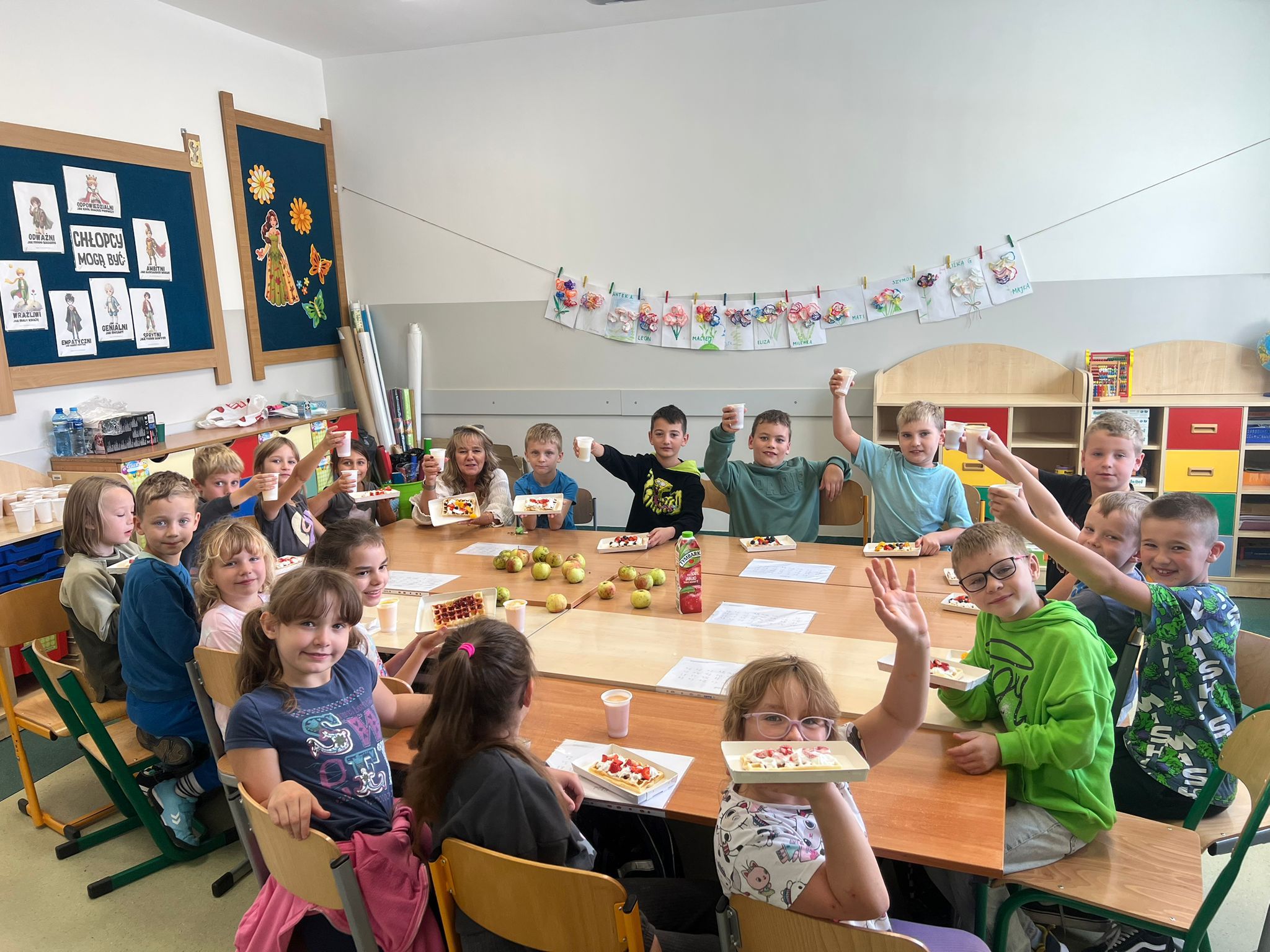 Dzień 🍎 w klasie 2B. Pyszny sok z witaminami. Polecamy ;)