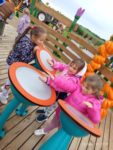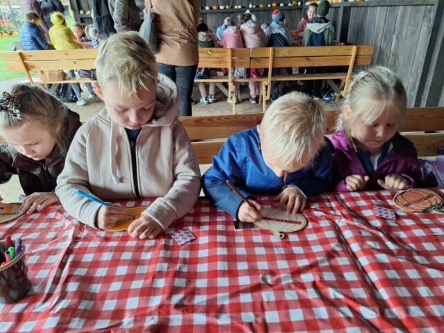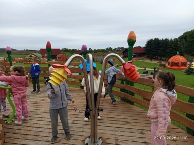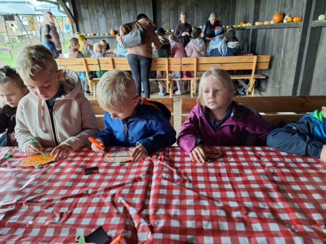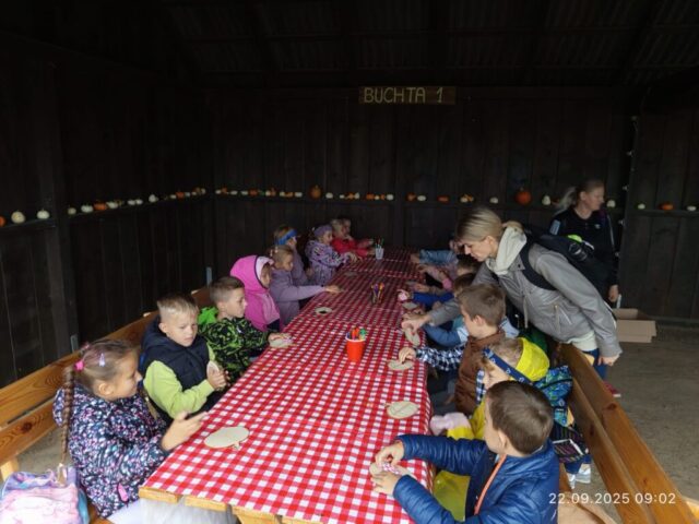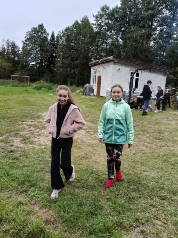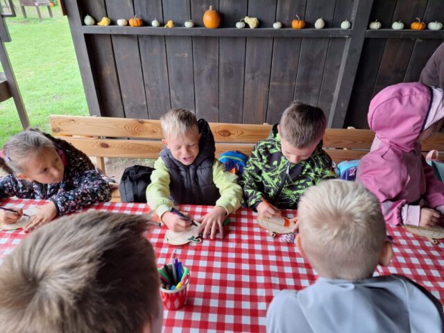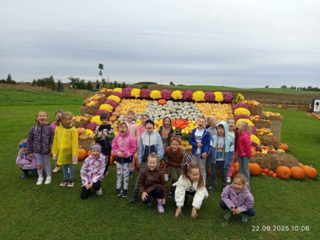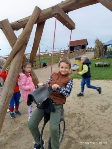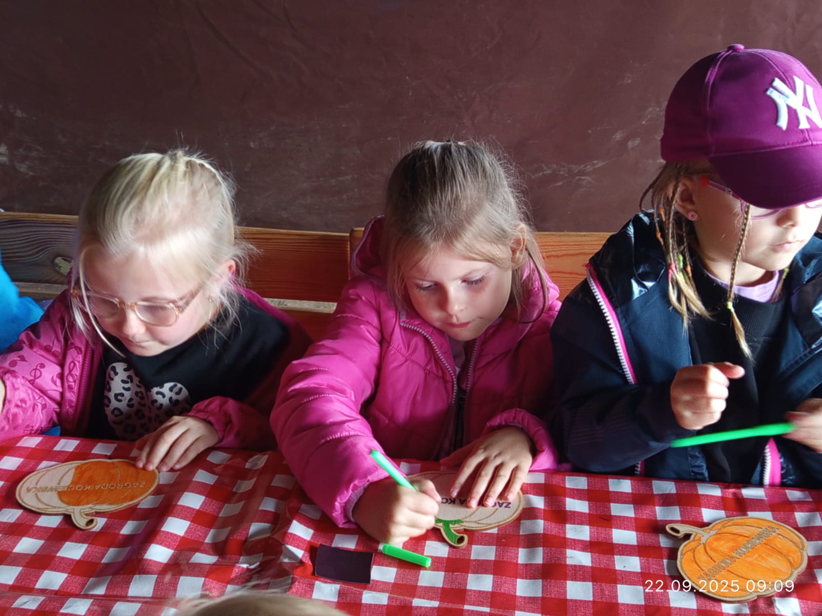 Uczniowie klas 1–3 wzięli udział w terenowych zabawach, takich jak poszukiwanie ukrytych jabłek i inne aktywności ruchowe, które sprawiły im wiele radości.