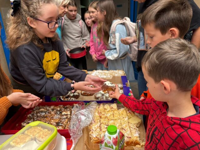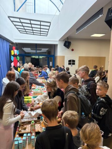 Podczas przerw delegacje klas sprzedawały przygotowane potrawy i soki. Zebrane środki zostały przeznaczone na budżet Samorządu Uczniowskiego.