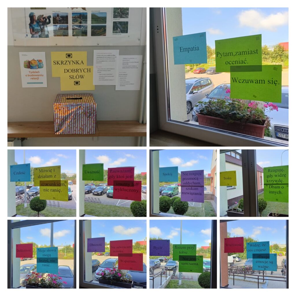 W minionym tygodniu nasza szkoła aktywnie uczestniczyła w Tygodniu Budowania Relacji. Jednym z najważniejszych elementów była Skrzynka Dobrego Słowa — miejsce, gdzie uczniowie, nauczyciele i pracownicy mogli anonimowo zostawiać pozytywne wiadomości, podziękowania i miłe słowa dla siebie nawzajem.